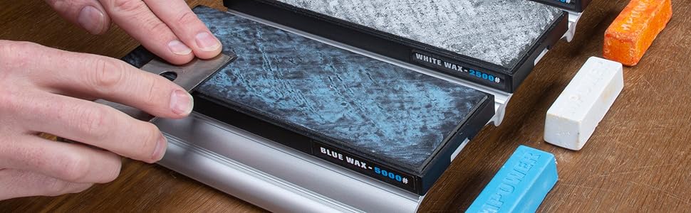 • 3 × polishing wax sticks: 1800# (orange), 2500# (white), 5000# (blue)