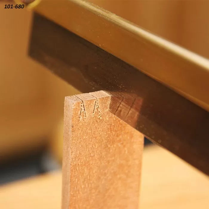 La mini sierra para caballeros Pax de 8" (101-681) es una auténtica bestia de carga. Esta sierra tiene una hoja de 8" de largo con 20 dientes por pulgada (TPI) y puede cortar hasta 1-1/8" de profundidad. Es perfecta para trabajos de ebanistería fina, como cortar colas de milano y espigas en maderas duras y blandas. Al igual que la mayoría de las sierras tradicionales de estilo "occidental" que cortan con empuje, el lomo de latón plegado añade rigidez a la placa de acero de 0,019" de espesor.