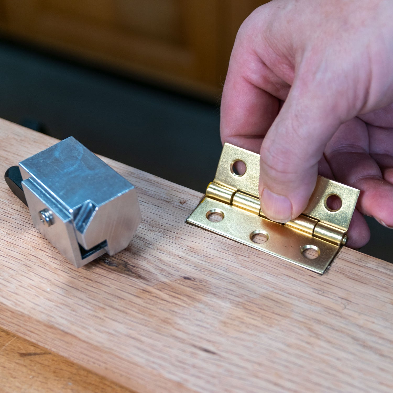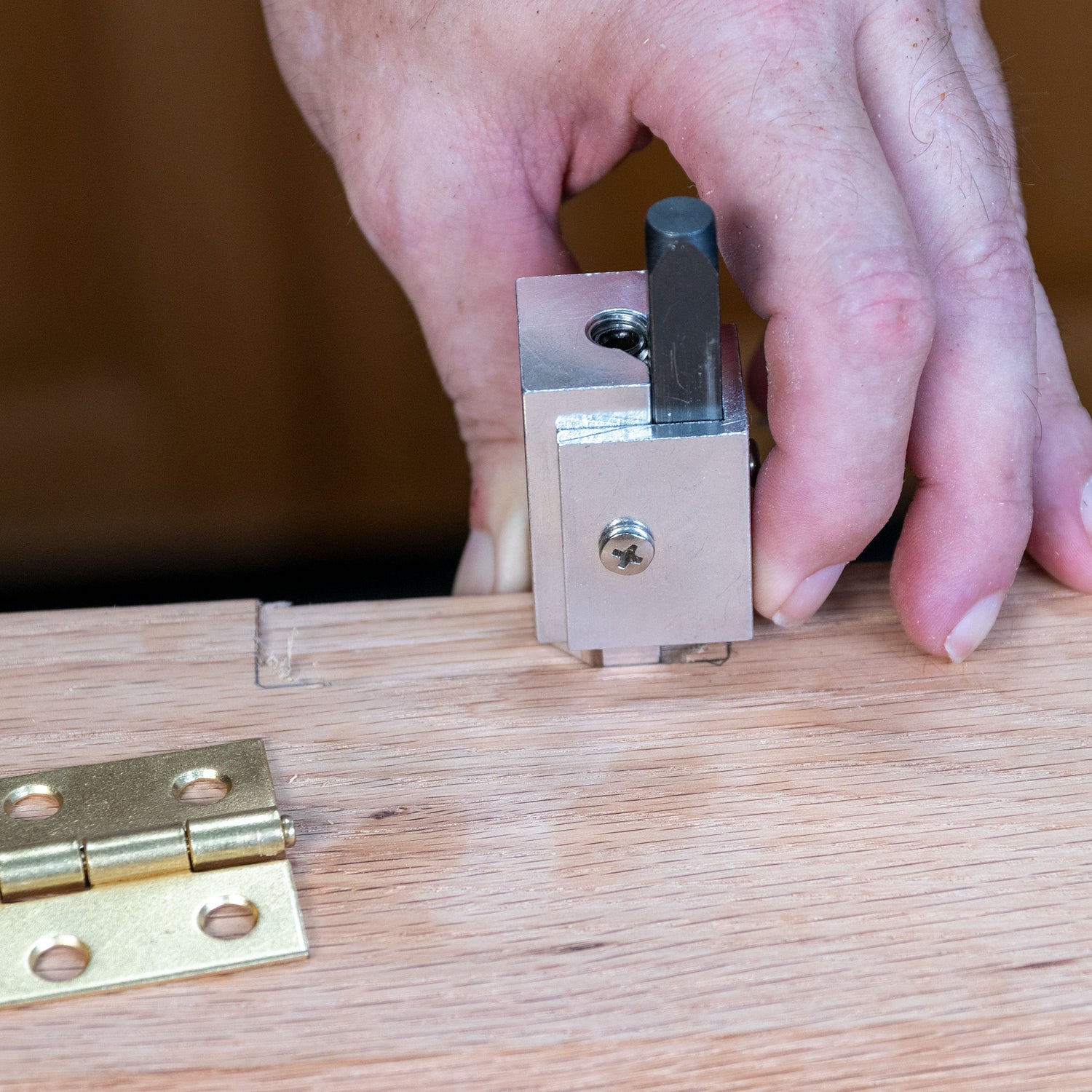 Este cincel de esquinas cuadradas está diseñado para cuadrar las esquinas redondeadas que quedan al fresar mortajas de bisagras. Es muy fácil de usar: presione los lados de la mortaja y golpee la parte superior con el mazo para lograr esquinas limpias, definidas y cuadradas. Cuenta con una hoja de corte afilada de acero endurecido de 3/8" de lado cuadrado.