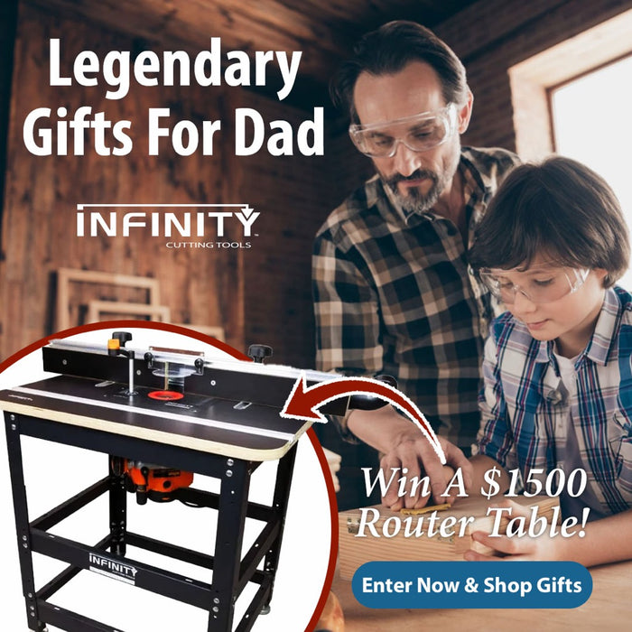 This page serves as your guide to all Infinity Tools giveaways—past, present, and future. Whether we’re giving away our Father's Day Router Table Package, Cut to Finish Pro Pack or the next big bundle, this hub will: