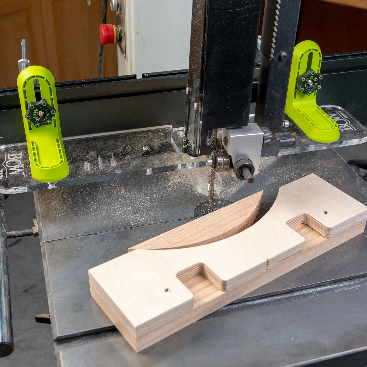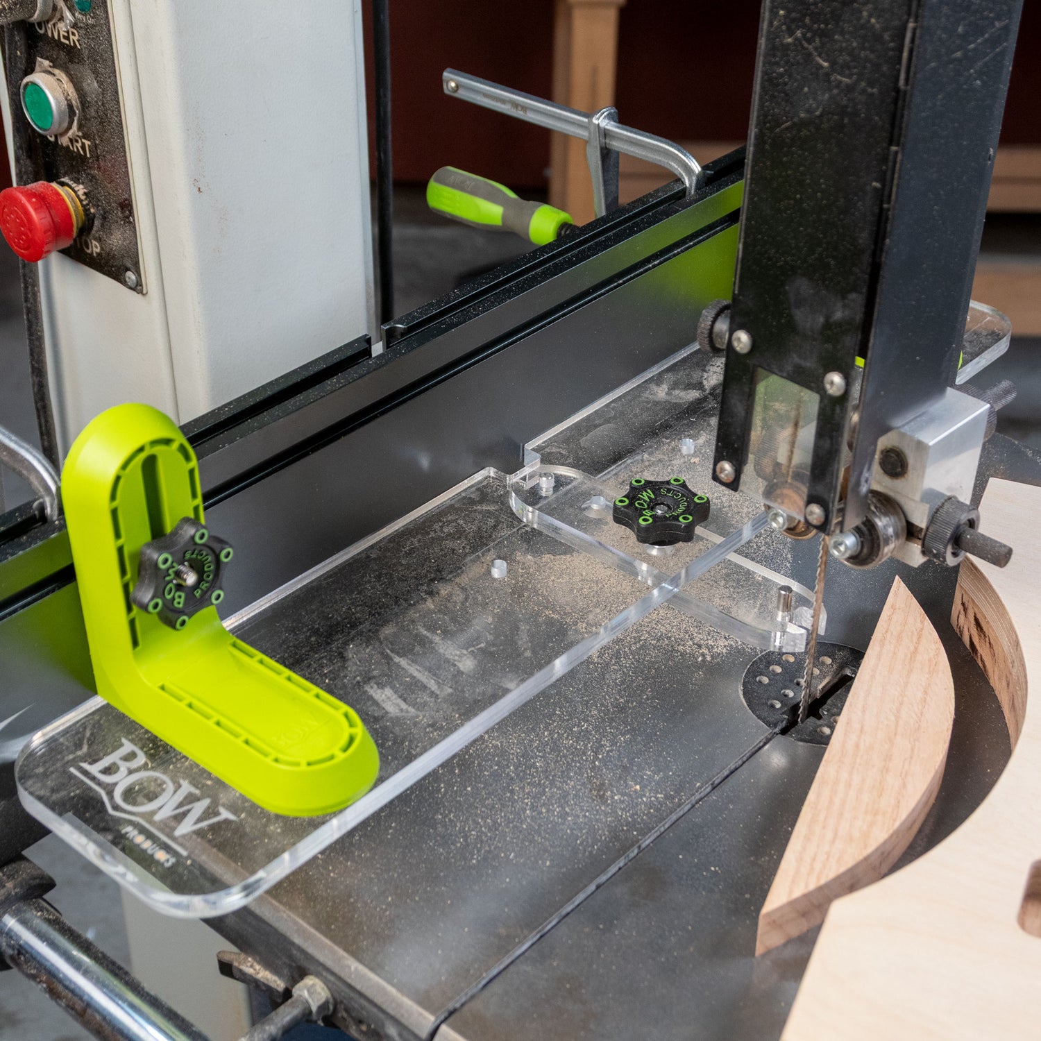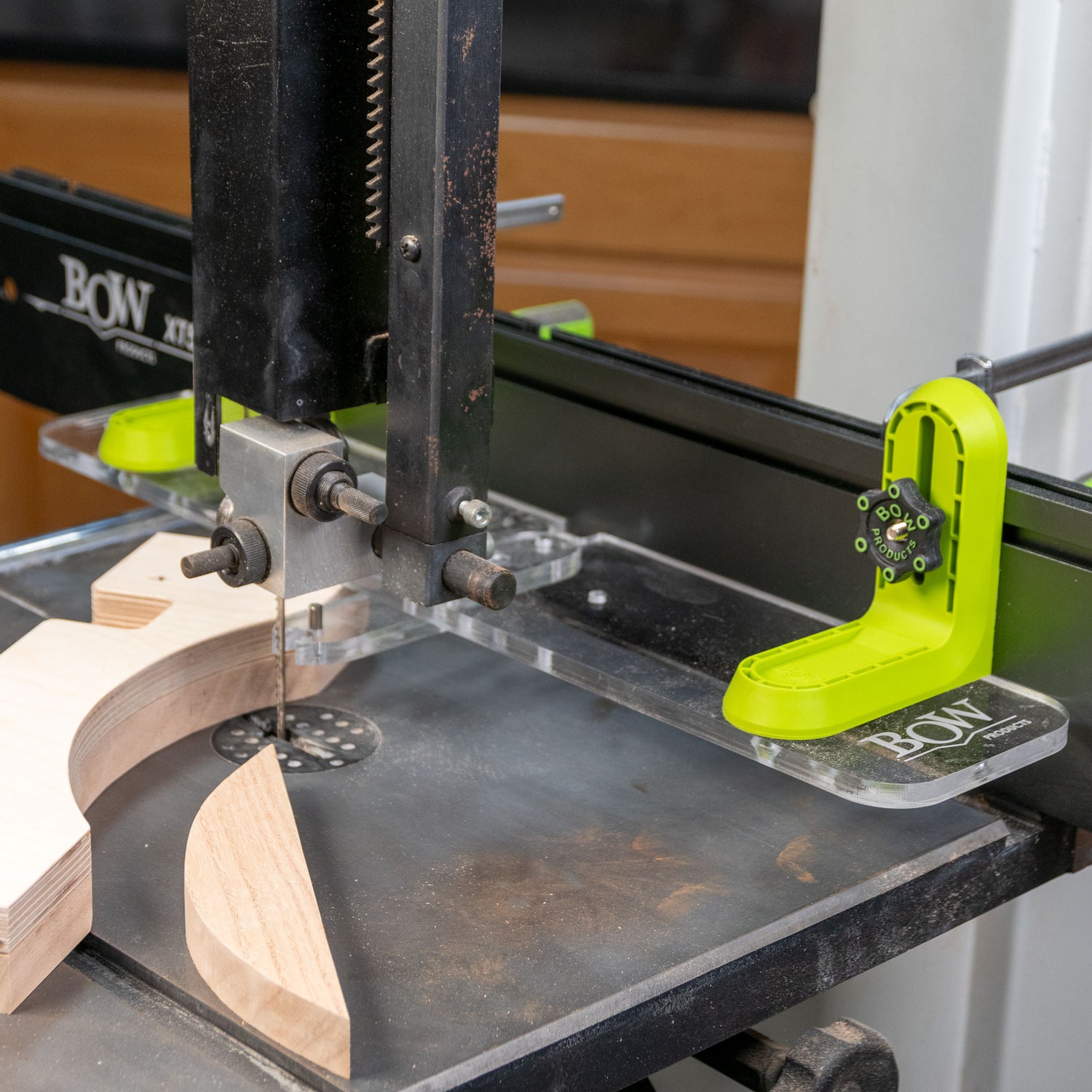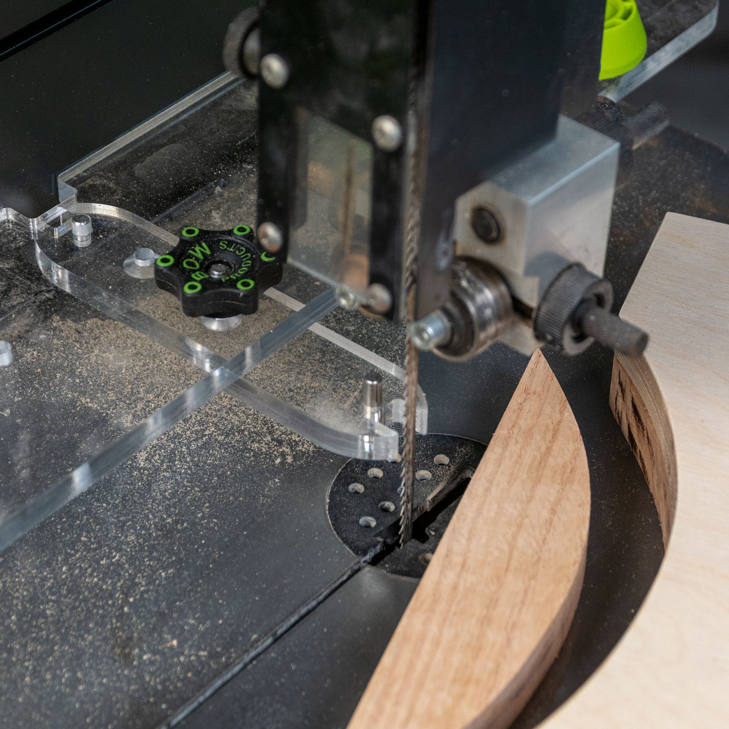A crystal-clear acrylic guide plate gives you full visibility of the blade or bandsaw line, helping you cut with confidence and accuracy. The dual rigid L-brackets ensure consistent alignment, while the adjustable guide follower makes it easy to produce smooth, repeatable curves and radii on the bandsaw. Because it’s a factory-engineered system, no improvising or jig-building is required—simply mount it and get to work.