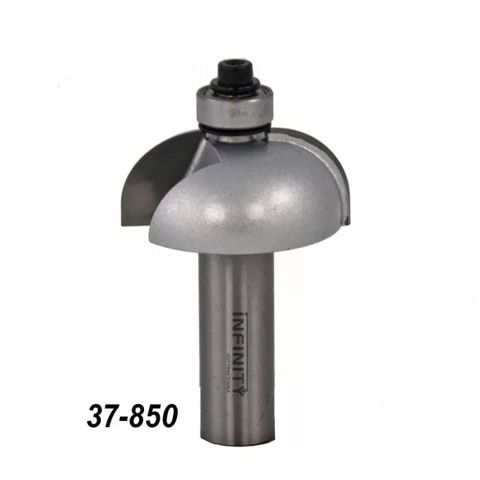 Infinity cove bits use a shearing angle to provide a cleaner cut with less effort. This angle also reduces tearout and provides a great surface as a profile, or as part of a matched joinery set.