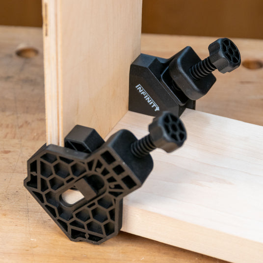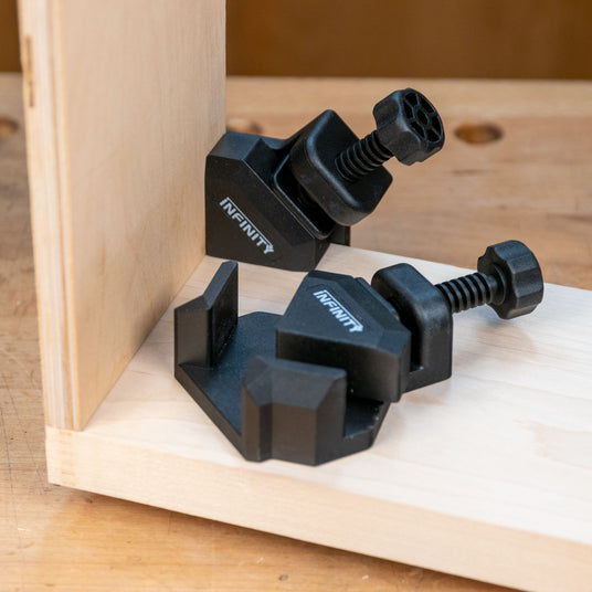 Achieving a perfect 90-degree joint when gluing and assembling two boards can be tricky—especially when space is tight and you need a low-profile clamping solution. That’s where the Infinity Tools Inside Corner Clamps shine. Designed specifically for right-angle woodworking applications, these clamps make it easy to hold boards together securely while your glue sets.