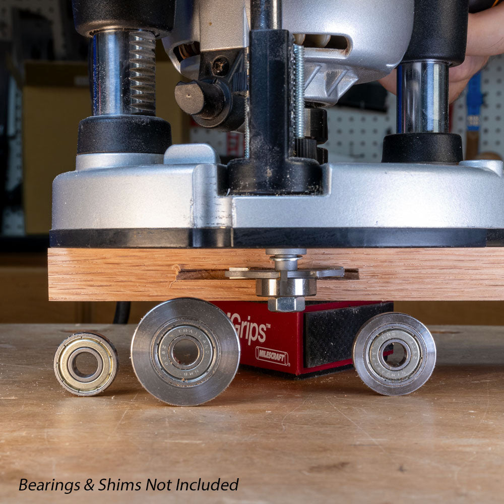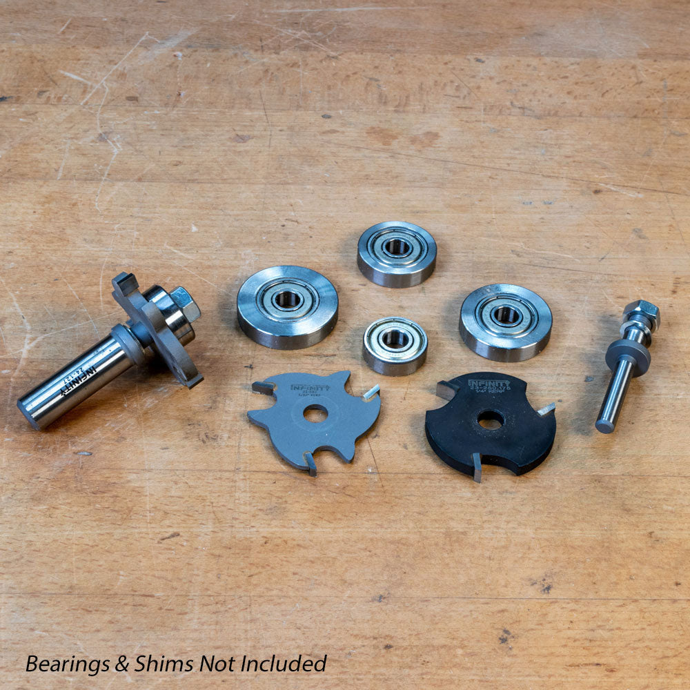 Switching cutters and bearings for the best performance is a simple task. Choose either a ½” or ¼” arbor, then select the cutter thickness preferred. Select the correct diameter bearing for your slot depth, and assemble.