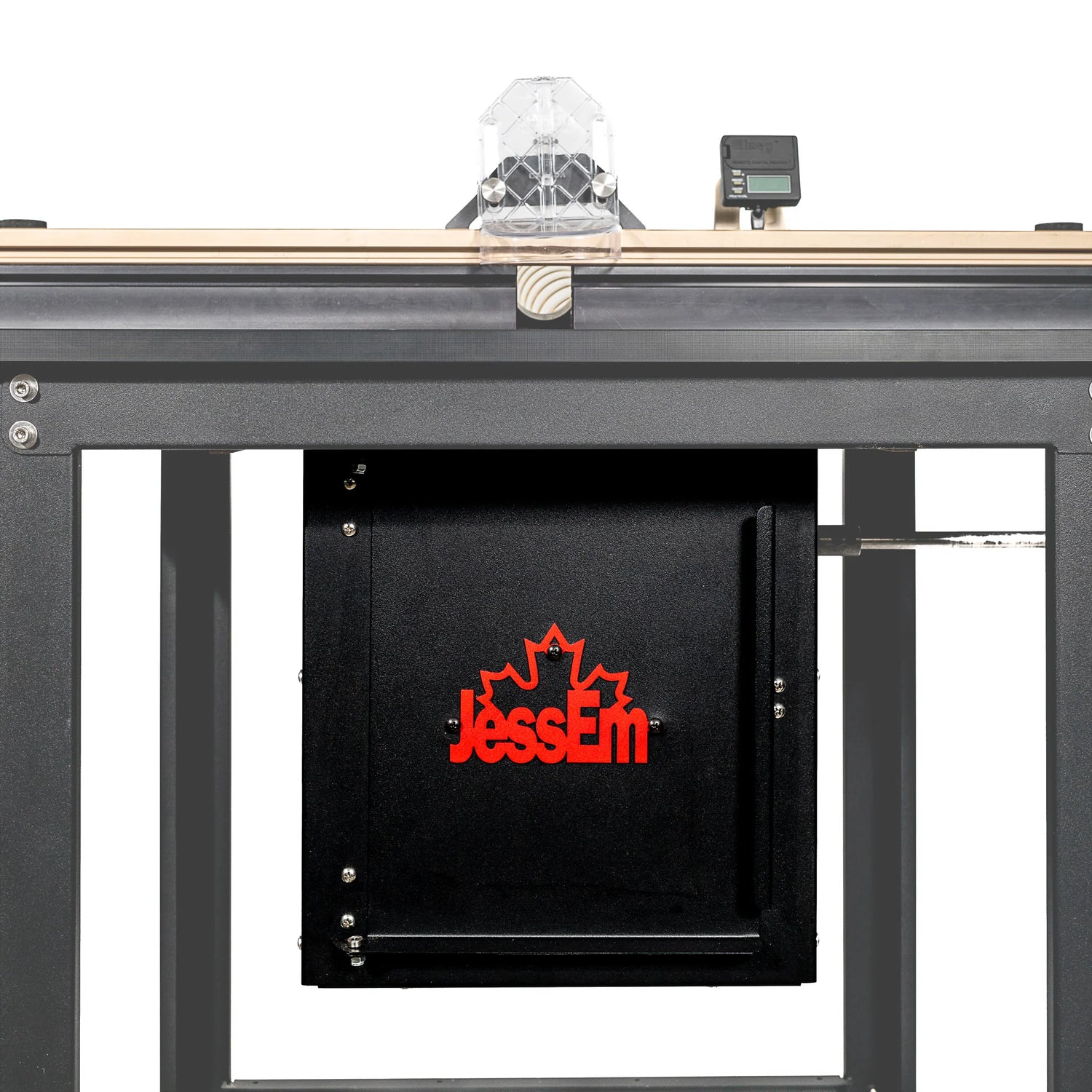 The JessEm Dual-Intake Dust Box is a heavy-duty, workshop-essential accessory designed to protect your router motor and your lungs. Built in-house from 18-gauge steel and finished in black satin texture, it pairs seamlessly with JessEm router tables and lifts.