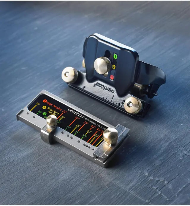 This honing guide accommodates a wide range of blade widths and thicknesses, and its fine-tuning adjustment allows precise control of the sharpening angle. The ergonomic thumbscrew and brass rollers ensure smooth feeding over the stone without binding or slipping. Whether you’re touching up a worn edge or reestablishing geometry on a new tool, the Veritas Mk II Standard Honing Guide enhances accuracy and repeatability for superior edge performance.